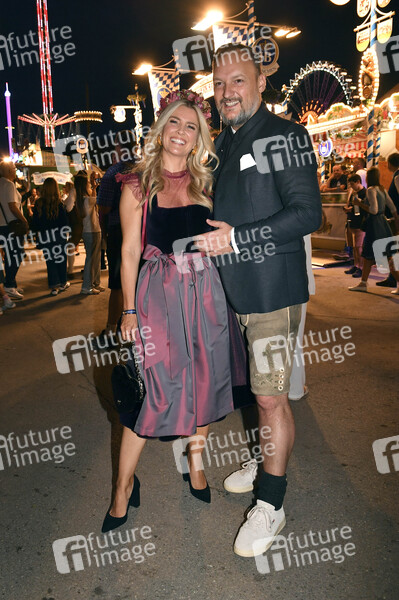 Jennifer Knäble mit Ehemann Felix Moese beim Almauftrieb in der Käfer Wiesn Schänke auf dem 190. Oktoberfest 2025 auf der Theresienwiese. München, 22.09.2025