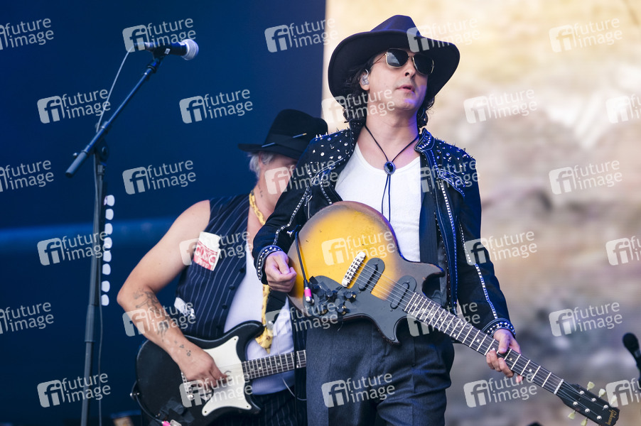 Prominenz, Celebrity, Celebrities, Musik, Konzert, Auftritt, Bühne, Stage, live, Kultur, Unterhaltung, Entertainment, Open Air, Glastonbury Festival of Contemporary Performing Arts, Festival für Musik und darstellende Kunst, Musiker, Sänger, Band, Indie-Rock, Britpop, Garage Rock, Post-Punk, Carl Barât