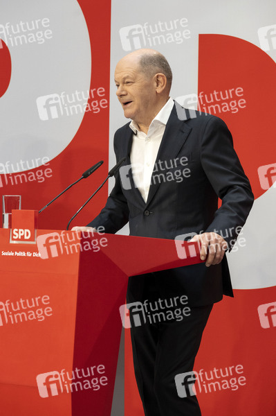 Olaf Scholz bei einer Pressekonferenz der SPD zu den Bundestagswahlen im Atrium des Willy-Brandt-Hauses. Berlin,24.02.2025