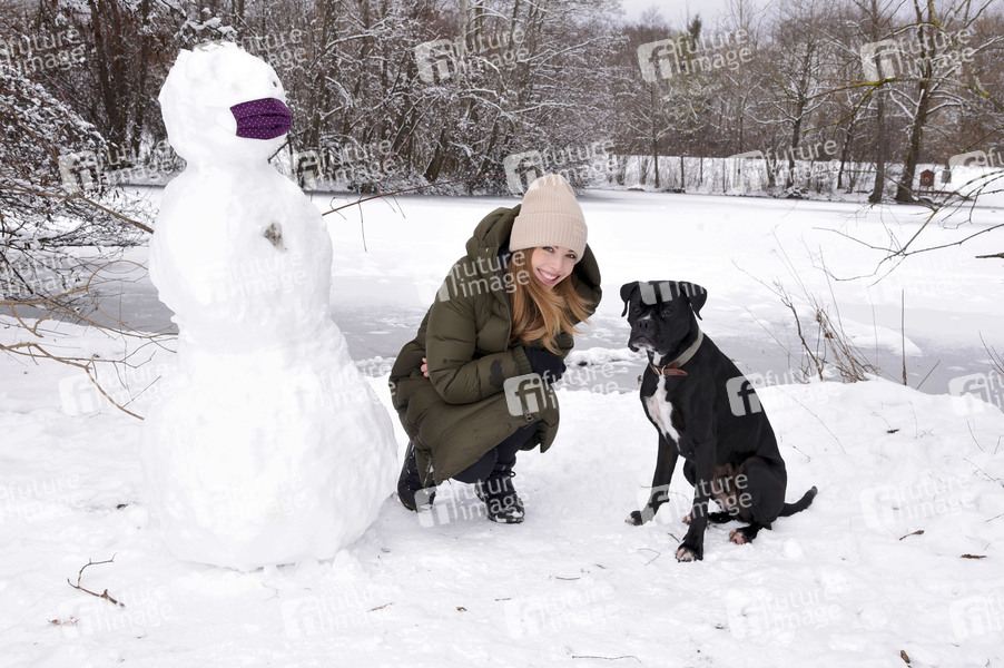 Lena Meckel mit ihrem Hund Ludwig beim Winterspaziergang im Ostpark. München, 07.01.2021
