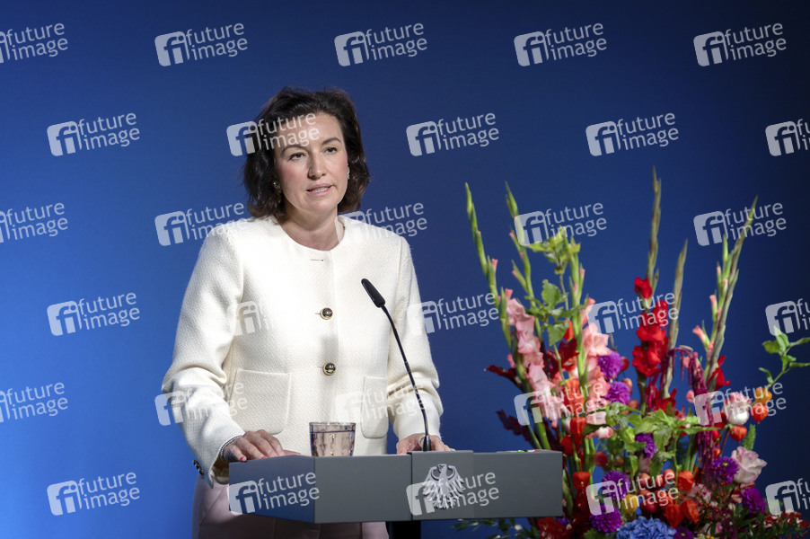 Dorothee Bär bei der Ausstellungseröffnung 'Unsichtbare Wissenschaftlerinnen - Versäumte Bilder' im Bundesministerium für Forschung, Technologie und Raumfahrt. Berlin, 16.09.2025