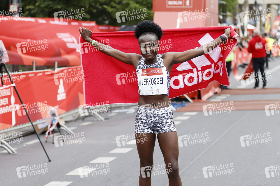 Die Gewinnerin Joyciline Jepkosgei beim 40. Berliner Halbmarathon 2021. Berlin, 22.08.2021