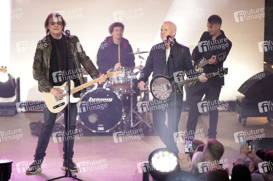 Dieter 'Maschine' Birr und Dirk Michaelis live in der TV-Show 'MDR-Frühlingserwachen' auf der Freilichtbühne am Borberg. Kirchberg, 10.05.2025