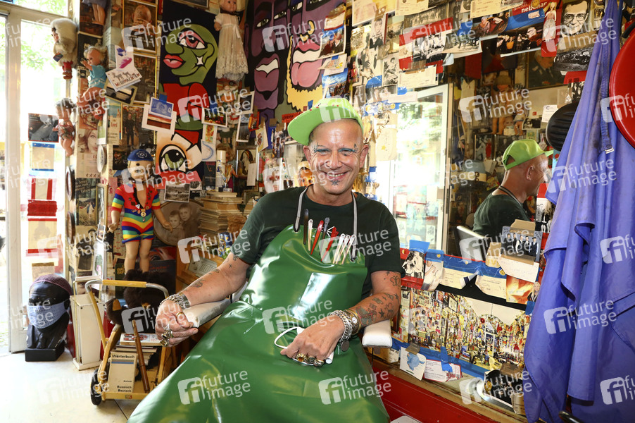 Frank Schäfer in seinem Szene-Friseurladen 'Frank & Amanda' im Prenzlauer Berg. Berlin, 25.06.2021