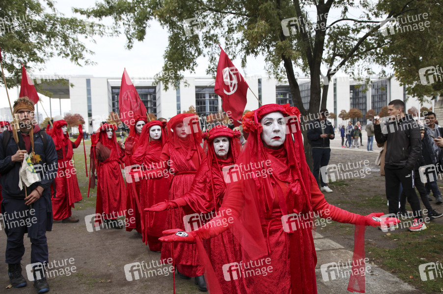 The Red Rebel Brigade der Umweltschutzgruppe 'Extinction Rebellion' bei einer Demonstration vom Tiergarten zum Brandenburger Tor. Berlin, 11.10.2019