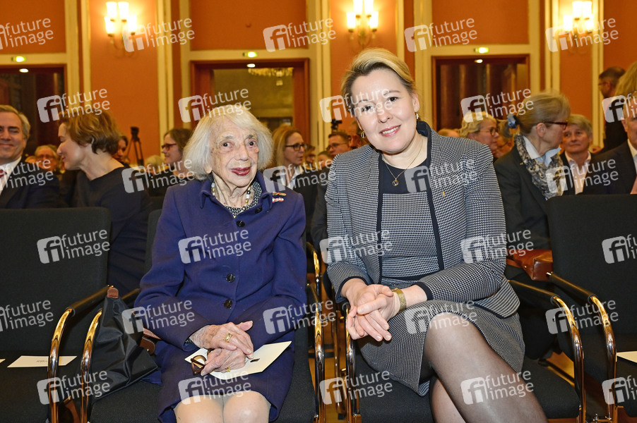 Margot Friedländer und Franziska Giffey bei der Verleihung der Ehrenbürgerwürde an Friede Springer im Festsaal Rotes Rathaus. Berlin, 26.02.2025
