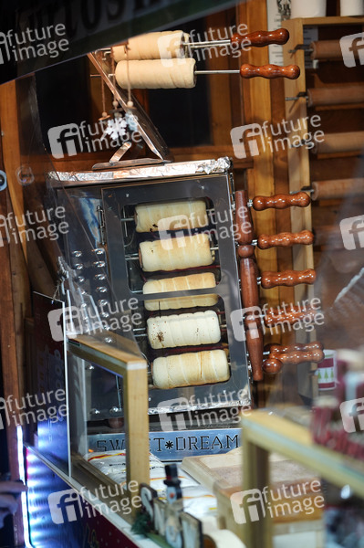 Verkaufsstand an dem Baumkuchen hergestellt wird