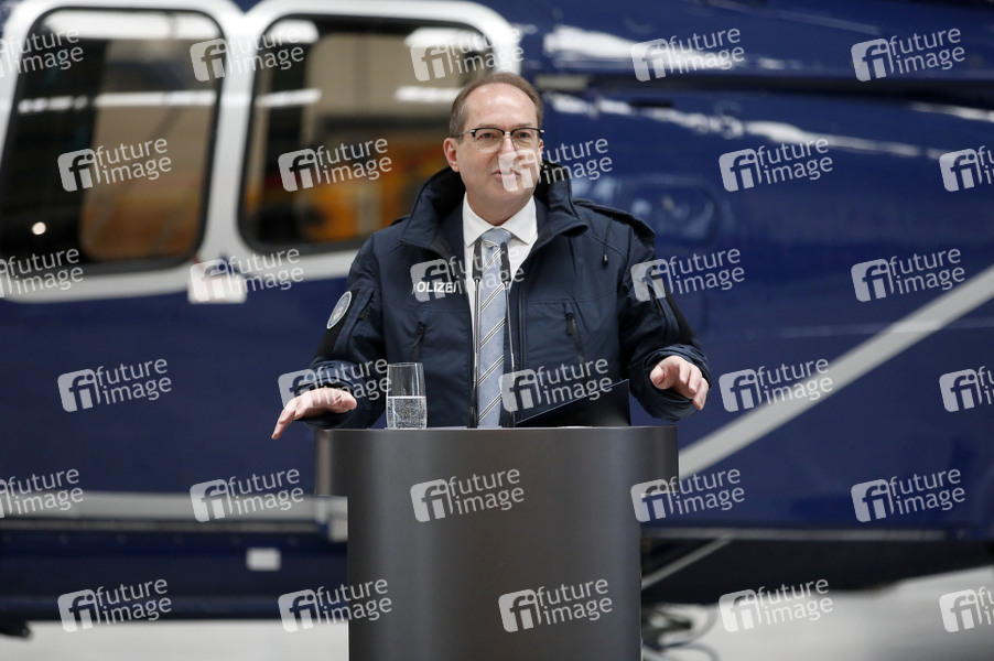 Alexander Dobrindt bei der Indienststellung der Drohnenabwehreinheit der Bundespolizei bei der Bundespolizei-Fliegerstaffel Blumberg. Ahrensfelde, 02.12.2025