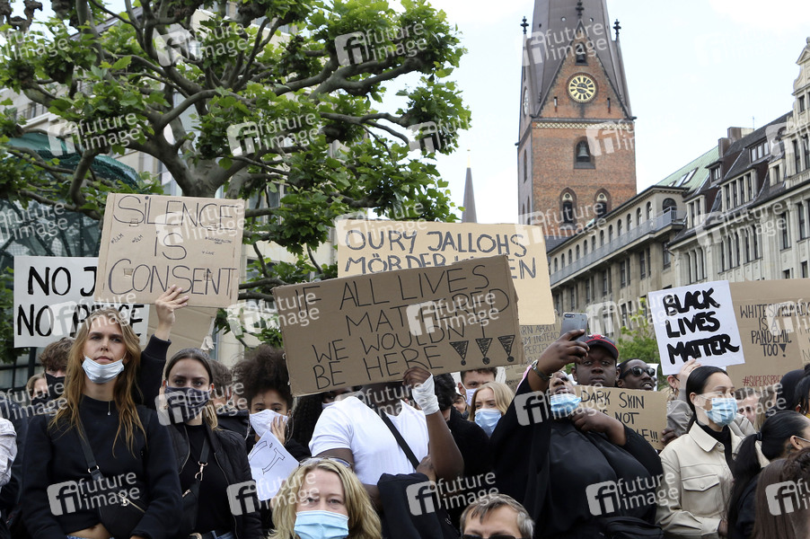 Demonstranten bei der 'Enough is Enough! - There can be no Peace without Justice!' auf dem Rathausmarkt. Hamburg, 06.06.2020