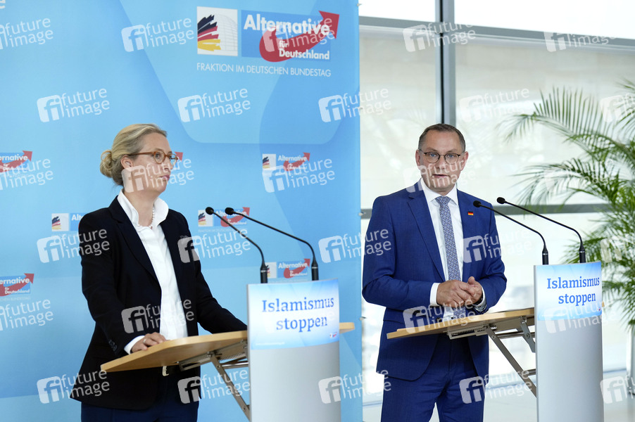 Politik, Statement, Pressekonferenz, PK, Reichstag, Deutscher Bundestag, Demokratie, Parlament, Parlamentsgebäude, Volksvertreter, MdB, Mitglied des Bundestages, Abgeordnete, Politikerin, Bundessprecherin der AfD, Abgeordneter, Politiker, Bundessprecher der AfD, Vorsitzende der AfD-Bundestagsfraktion