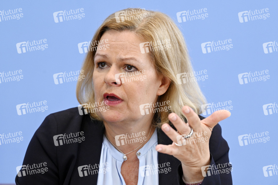 Nancy Faeser bei der Bundespressekonferenz zu den Fallzahlen für die Politisch Motivierte Kriminalität (PMK) 2023 im Haus der Bundespressekonferenz. Berlin, 21.05.2024