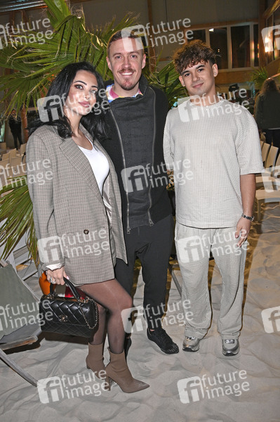 Max Kruse mit Ehefrau Dilara Kruse und Sinan Movez bei der Premiere des TV Realityformats 'Promis unter Palmen' im BeachMitte. Berlin, 10.02.2025