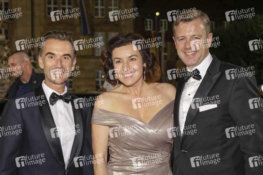Florian Silbereisen und Dorothee Bär mit Ehemann Oliver Bär beim Staatsempfang nach der Eröffnung der 113. Richard-Wagner-Festspiele 2025 mit der Neuinszenierung von 'Die Meistersinger von Nürnberg' im Neuen Schloss Bayreuth. Bayreuth, 25.07.2025