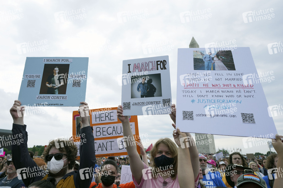 Tausende Menschen demonstrieren beim March for Our Lives gegen die landesweite steigende Waffengewalt und fordern den Kongress auf, Schritte zu ihrer Beendigung zu unternehmen. March for Our Lives wurde von Überlebenden der Massenschießerei 2018 an einer High School in Parkland, Florida gegründet. Washington, 11.06.2022