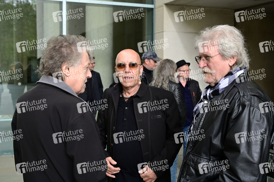 Toni Krahl von City bei der Gedenkfeier für den verstorbenen Gitarristen von City, Fritz Puppel, im Krematoriumsgebäude Baumschulenweg. Berlin, 10.04.2024