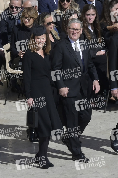 Keir Starmer mit Ehefrau Victoria Starmer bei der Trauermesse für den verstorbenen Papst Franziskus auf dem Petersplatz. Vatikanstadt, 26.04.2025