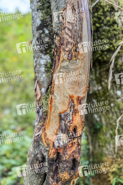 Biberschäden richten oft großen Schaden an, welche umfangreiche Instandsetzungen notwendig machen können. Betroffen sind oft Straßen und Schienenwege durch abknickende Bäume, welche angefressen worden sind. (Symbolfoto, Themenfoto) Bremgarten, 09.10.2024