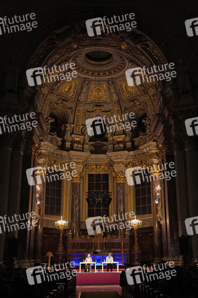 Anna Schudt und Jörg Hartmann bei der Lesung aus Julian Barnes Roman 'Unbefugtes Betreten' im Rahmen der Lesereihe 'Meisterhaftes aus dem Berliner Dom' im Berliner Dom. Berlin, 24.09.2022