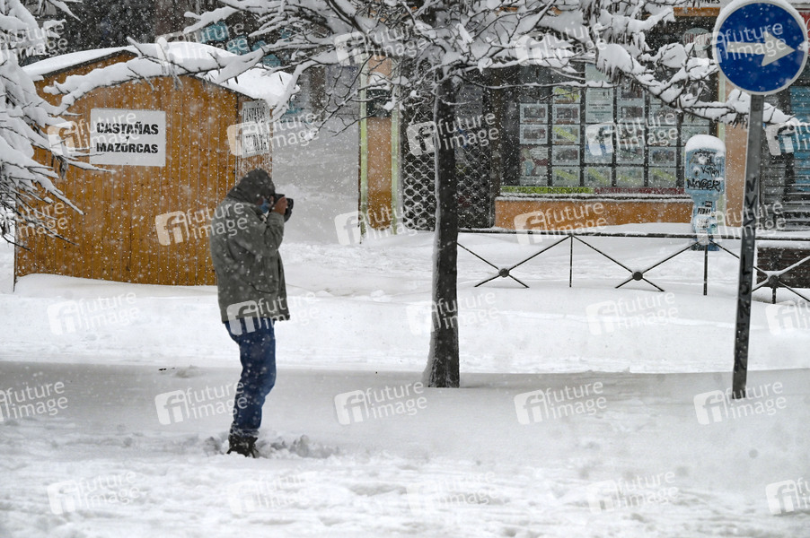 Das Sturmtief Filomena sorgt in der Region Madrid und anderen Teilen Spaniens mit starken Schneefällen für Chaos. Die Hauptstadt Madrid wurde durch historisch heftigen Schneefall lahmgelegt. Seit 50 Jahren hat es nicht so geschneit. Der Verkehr ist in weiten Teilen des Landes zusammengebrochen. Madrid, 09.01.2021