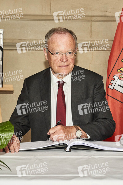 Ministerpräsident Stephan Weil trägt sich in das Kondolenzbuch für Queen Elisabeth II. im Neuen Rtahaus ein. Hannover, 11.09.2022