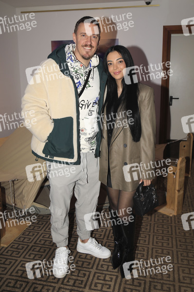 Max Kruse mit Ehefrau Dilara Mardine beim Public Viewing zur TV-Premiere der 4. Staffel der Reality-Show 'Couple Challenge - Das stärkste Team gewinnt' 2025 im Hotel Palace Berlin. Berlin, 12.03.2025