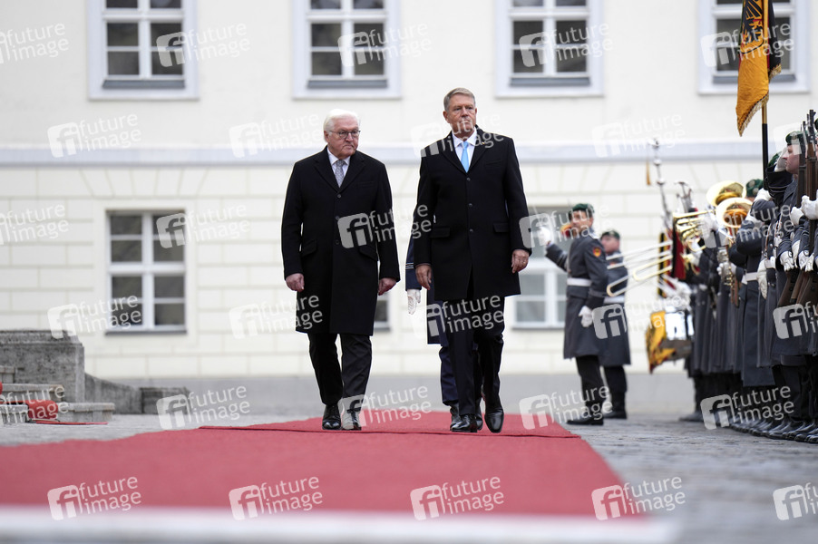 Klaus Iohannis und Frank-Walter Steinmeier beim Empfang des Präsidenten von Rumänien mit militärischen Ehren und zum gemeinsamen Gespräch im Schloss Bellevue. Berlin, 16.11.2024