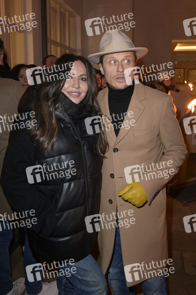 Simone Thomalla und Roman Knizka beim offiziellen Opening der Baltic Lights 2024 mit Fackellauf und Lagerfeuer an der Alex Strandbar. Heringsdorf, 01.03.2024
