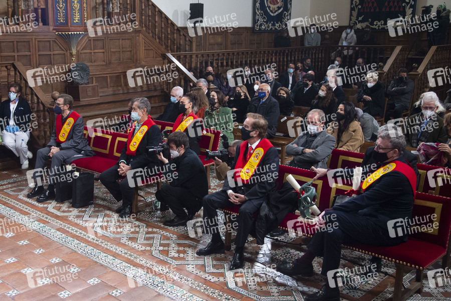 Björn Ulvaeus, Pepe Habichuela, Ginesa Ortega, Ramon Arcusa, Manuel de la Calva, Nacho Garcia Vega und Nacho Duato bei der Verleihung der Ehrenmitgliedschaften des Claustro Universitario de las Artes an der Universität Alcalá. Alcalá de Henares, 24.11.2021