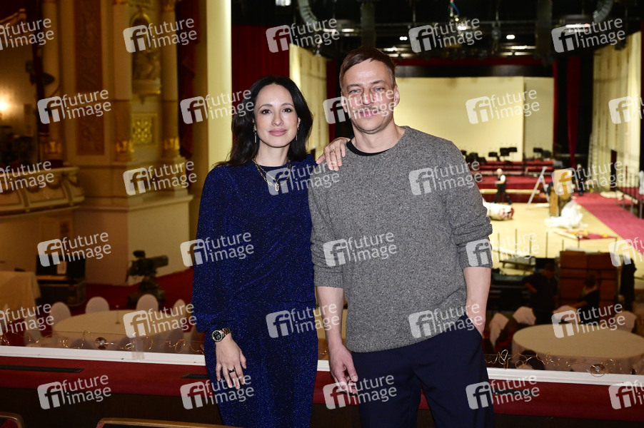 Stephanie Stumph und Tom Wlaschiha bei der Pressekonferenz zum SemperOpernball 2025 in der Semperoper. Dresden,06.02.2025