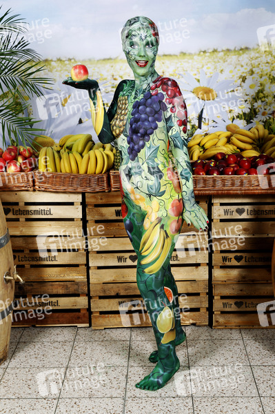 Bodypainting Meets Business, Body-Painting, Erotik, Frau, Mädchen, nackt, Akt, weiblich, Körperkunst, Körperfarben, Farbe, Bemalung, Kunst, Malerei, Fotografie, Beruf, Obst, Früchte, gesund, Ernährung, Apfel, Banane, Ananas, Melone, Joerg Dewaldo Duesterwald, body painting, erotic, woman, girl, nude, female, body art, colors, photography, profession, fruit, fruits, healthy, nutrition, apple, banana, pineapple, melon