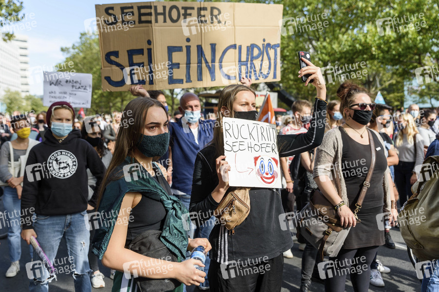 Demonstranten fordern unter dem Motto 'Es reicht! - Wir haben Platz' gemeinsam mit der Aktion Seebrücke und Campact die Evakuierung des Flüchtlingslagers in Moria und die Aufnahme von Flüchtlingen in Deutschland. Berlin, 20.09.2020