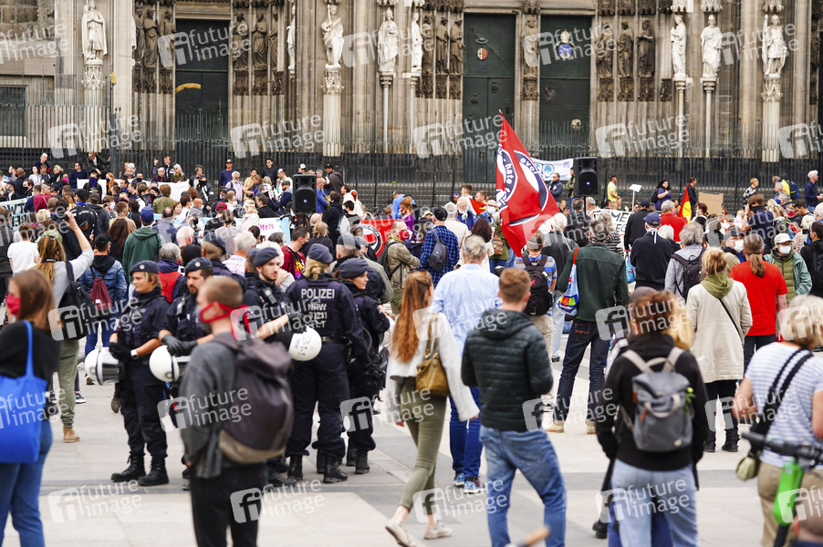 Demonstrationen des Bündnis Köln gegen Rechts und Gegner der Corona Corona Massnahmen auf dem Roncalliplatz. Köln, 16.05.2020