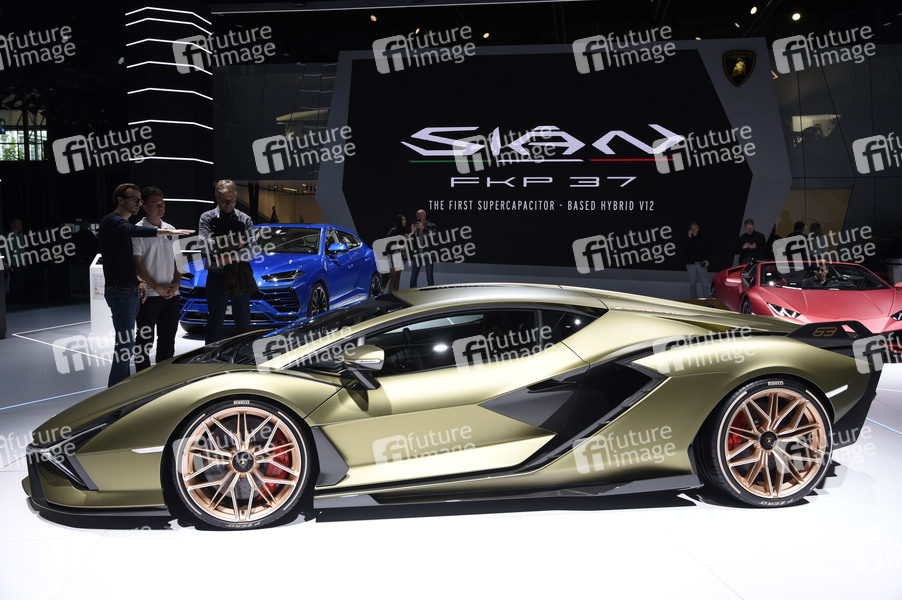 Lamborghini Sian mit V12-Hybrid auf der Internationalen Automobil-Ausstellung 2019 auf dem Messegelände. Frankfurt am Main, 19.09.2019