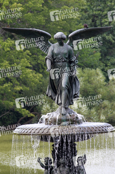 Bronzestatue über der oberen Schale des Bethesda Brunnen, Engel über den Gewässern, Künstlerin Emma Stebbins, Höhe: 2.6 Meter, eingeweiht 1873