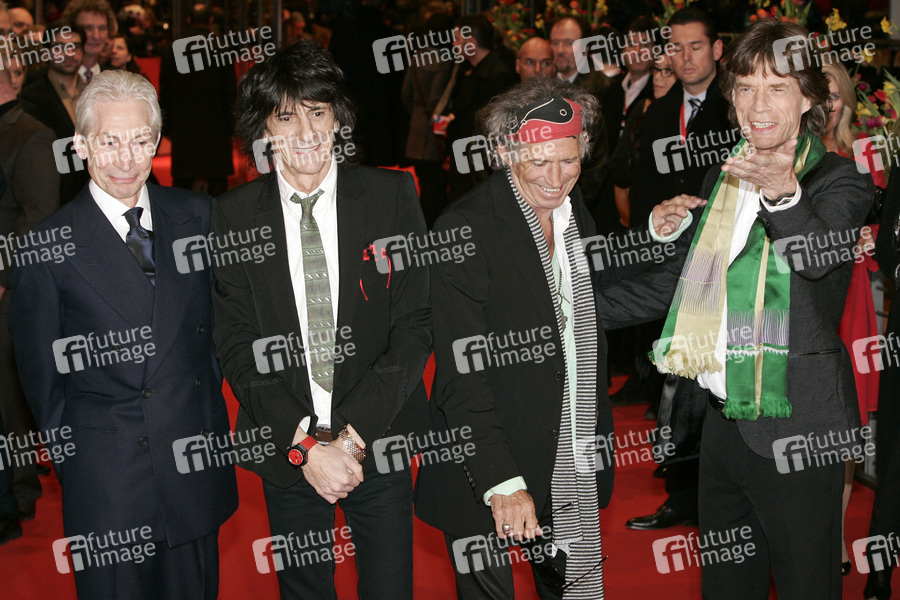 Charlie Watts, Ron Wood, Keith Richards und Mick Jagger von The Rolling Stones bei der Festivaleröffnung mit der Premiere des Kinofilms 'Shine a Light' auf der Berlinale 2008 / 58. Internationale Filmfestspiele Berlin im Festivalpalat. Berlin, 07.02.2008