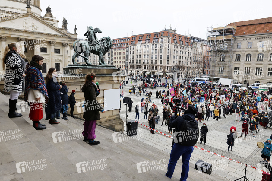 Unter dem Motto 'Gemeinsam in eine lebendige Zukunft' findet ein multikultureller Frauenmarsch vom Brandenburger Tor über das Rote Rathaus zum Gendarmenmarkt statt. Berlin, 28.02.2021
