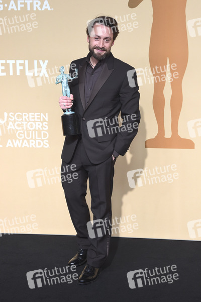 Kieran Culkin mit dem Preis für den besten Nebendarsteller in Kino in 'A Real Pain' beim Preisträger-Photocall der 31. Screen Actors Guild Awards 2025 im Shrine Auditorium and Expo Hall. Los Angeles, 23.02.2025