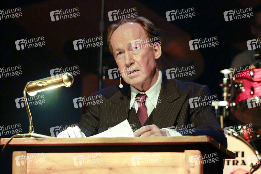 Ulrich Noethen und das Moka Efti Orchestra bei der musikalischen Lesung 'Der nasse Fisch' im Theater am Tanzbrunnen. Köln, 12.03.2025