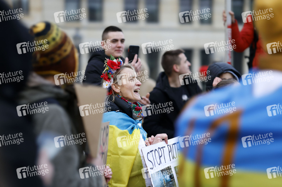 Aktion, Demo, Demonstrant, Demonstranten, Demonstration, Demonstrierende, Demos, Europapolitik, internationale Politik, Konflikt, Krieg, Kriegsbeginn, Kriegsgefahr, Kundgebung, Militäroffensive, Militärschlag, Protest, Russland, Ukraine, Ukraine-Russland-Krise, internationale Krise, Wut Einmarsch, Krieg, Angriff, Solidaritätsaktion, Solidarität, Ukrainekonflikt, Politik, Solidaritätsbekundung, Krise, Einmarsch, Angriff