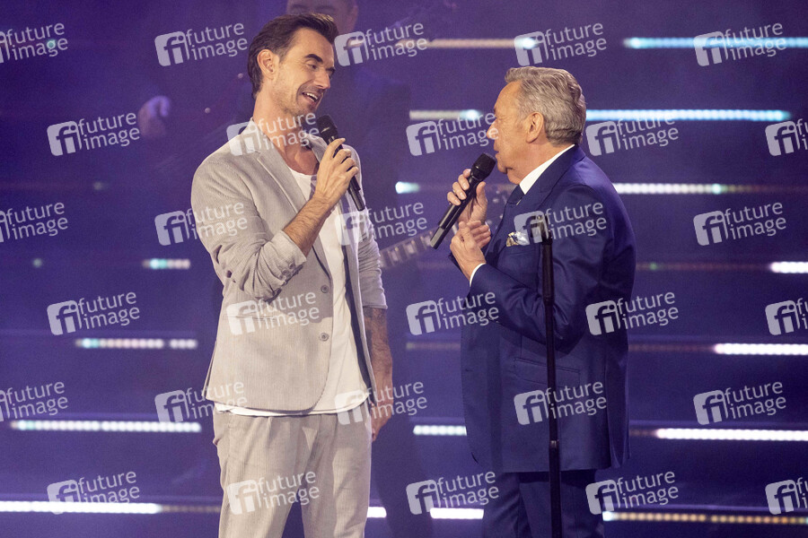 Florian Silbereisen und Roland Kaiser bei der Aufzeichnung der TV-Show 'Das grosse Schlagerjubiläum 2022 - Auf die nächsten 100!' im Studio 3 der Media City. Leipzig, 21.10.2022