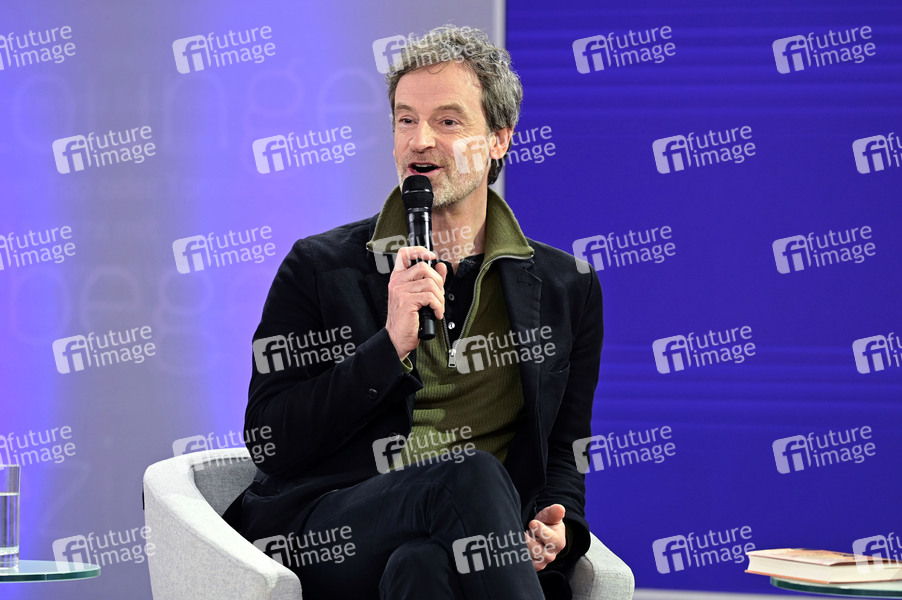 Jörg Hartmann im Gespräch zu seinem Buch 'Der Lärm des Lebens' auf der ARD, ZDF und 3sat Literaturbühne auf der Leipziger Buchmesse 2024 auf dem Messegelände. Leipzig, 21.03.2024