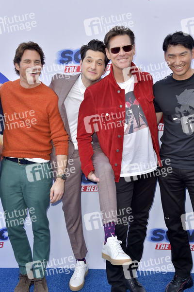 James Marsden, Ben Schwartz, Jim Carrey und Haruki Satomi beim 'Sonic the Hedgehog' Family Day Event im Paramount Theater. Los Angeles, 25.01.2020