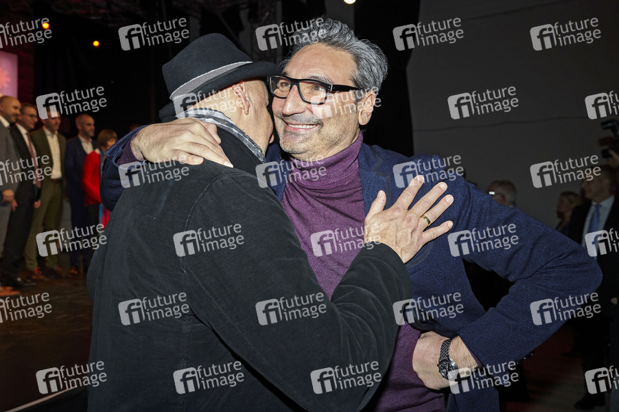 Thorsten Wingenfelder und Mousse T. bei der Verleihung des Stadtkulturpreises 2022 durch den Freundeskreis Hannover an Fury in the Slaughterhouse in der Orangerie Herrenhausen. Hannover, 29.12.2022