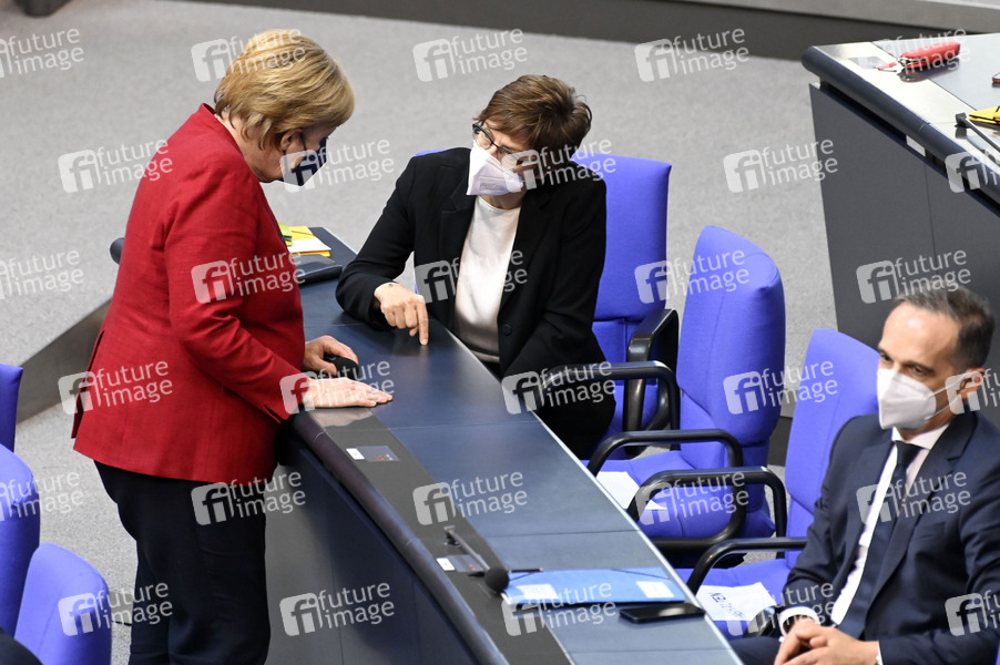 Angela Merkel, Annegret Kramp-Karrenbauer und Heiko Maas in der 238. Sitzung des Deutschen Bundestages im Reichstagsgebäude. Berlin, 25.08.2021