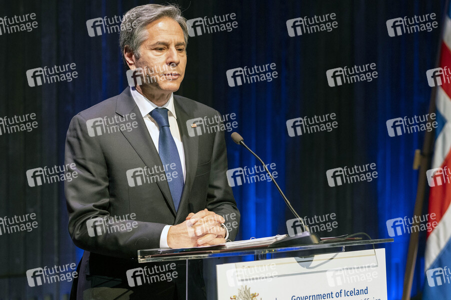 Außenminister Antony Blinken (USA) nach dem Treffen mit dem isländischen Außenminister bei einer Presskonferenz am Rande der Sitzung des Arktischen Rates in der Harpa. Reykjavik, 20.05.2021