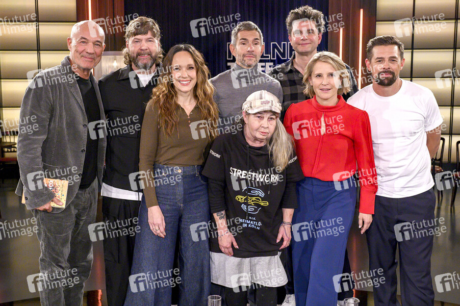 Heiner Lauterbach, Rea Garvey, Carolin Kebekus, Linda Rennings, Micky Beisenherz, Lutz van der Horst, Susan Link und Klaas Heufer-Umlauf bei der Aufzeichnung der WDR-Talkshow 'Kölner Treff' im WDR Studio BS 3. Köln, 06.11.2025
