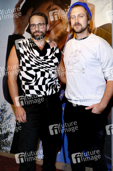 Bastian Castillo mit Freund Sasha Chupick bei der Eröffnung der Ausstellung 'Woodstock Vision' des Fotografen Elliott Landy im Kranzler Eck. Berlin, 31.03.2022