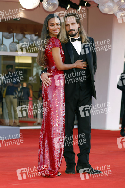 Zoe Saldana mit Ehemann Marco Perego bei der Premiere des Kinofilms 'È stata la mano di Dio / The Hand of God' auf der Biennale di Venezia 2021 / 78. Internationale Filmfestspiele von Venedig im Palazzo del Cinema. Venedig, 02.09.2021