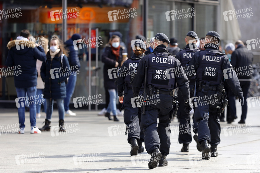 Am Rande einer unangemeldete Demo von Kritikern der Corona-Maßnahmen vor dem Kölner Dom führten Polizei und Ordnungsamt zahlreiche Kontrollen auf Einhaltung der Corona-Maßnahmen wie Mindestabstand und Maskenpflicht durch. Ab Montag will NRW wegen der steigenden Inzidenzzahlen noch strengere Corona-Regeln anwenden. Köln, 27.03.2021