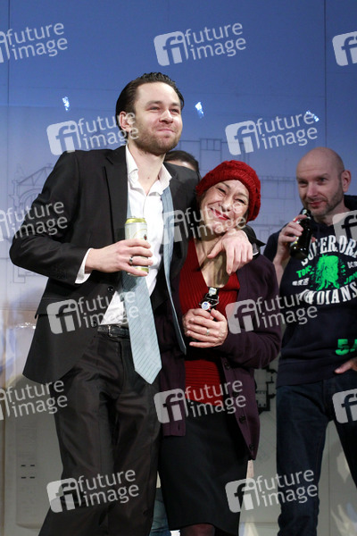 Rasmus Borkowski, Gitta Schweighoefer und Ralph Morgenstern bei der Fotoprobe des Theaterstuecks 'Richtfest' im Renaissance-Theater. Berlin, 07.03.2013